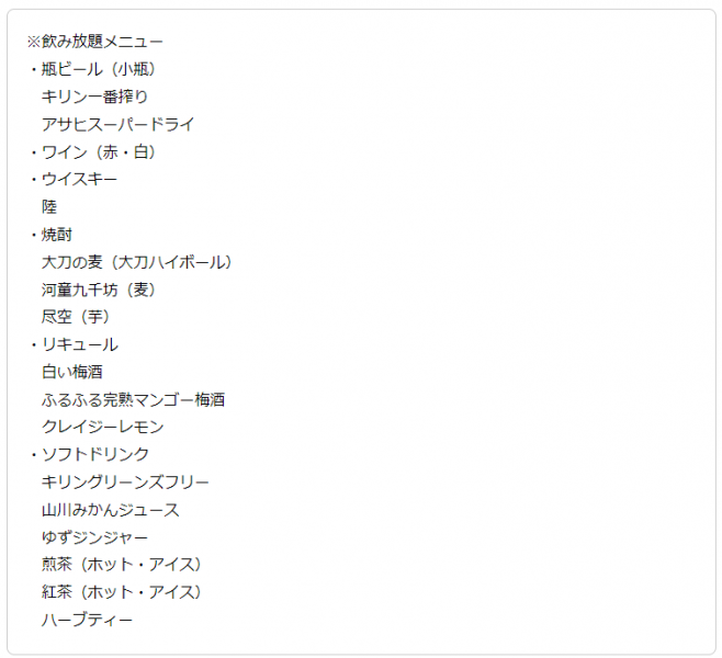 美味しいお飲み物をたくさん飲みたい方へ向けた、本運行限定飲み放題もご準備しております。