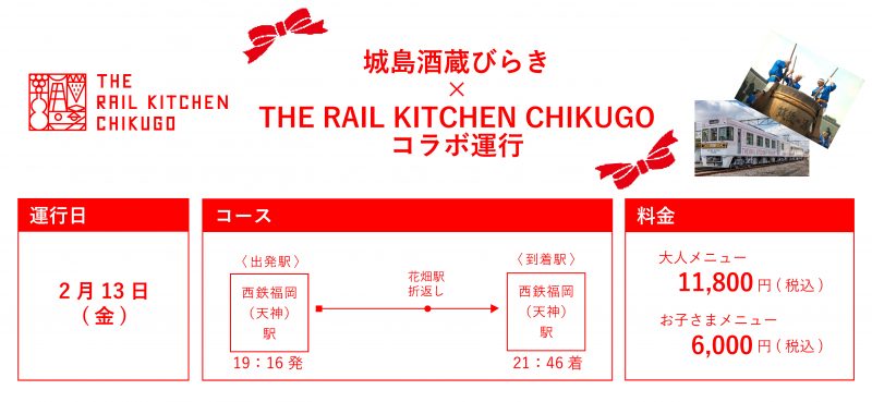 地域を味わう旅列車「THE RAIL KITCHEN CHIKUGO」では、2026年2月13日(金)に、城島酒蔵びらき×THE RAIL KITCHEN CHIKUGOコラボ運行を開催します。